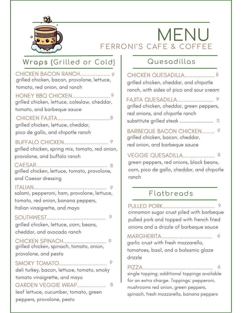 Ferroni's Cafe & Coffee Menu