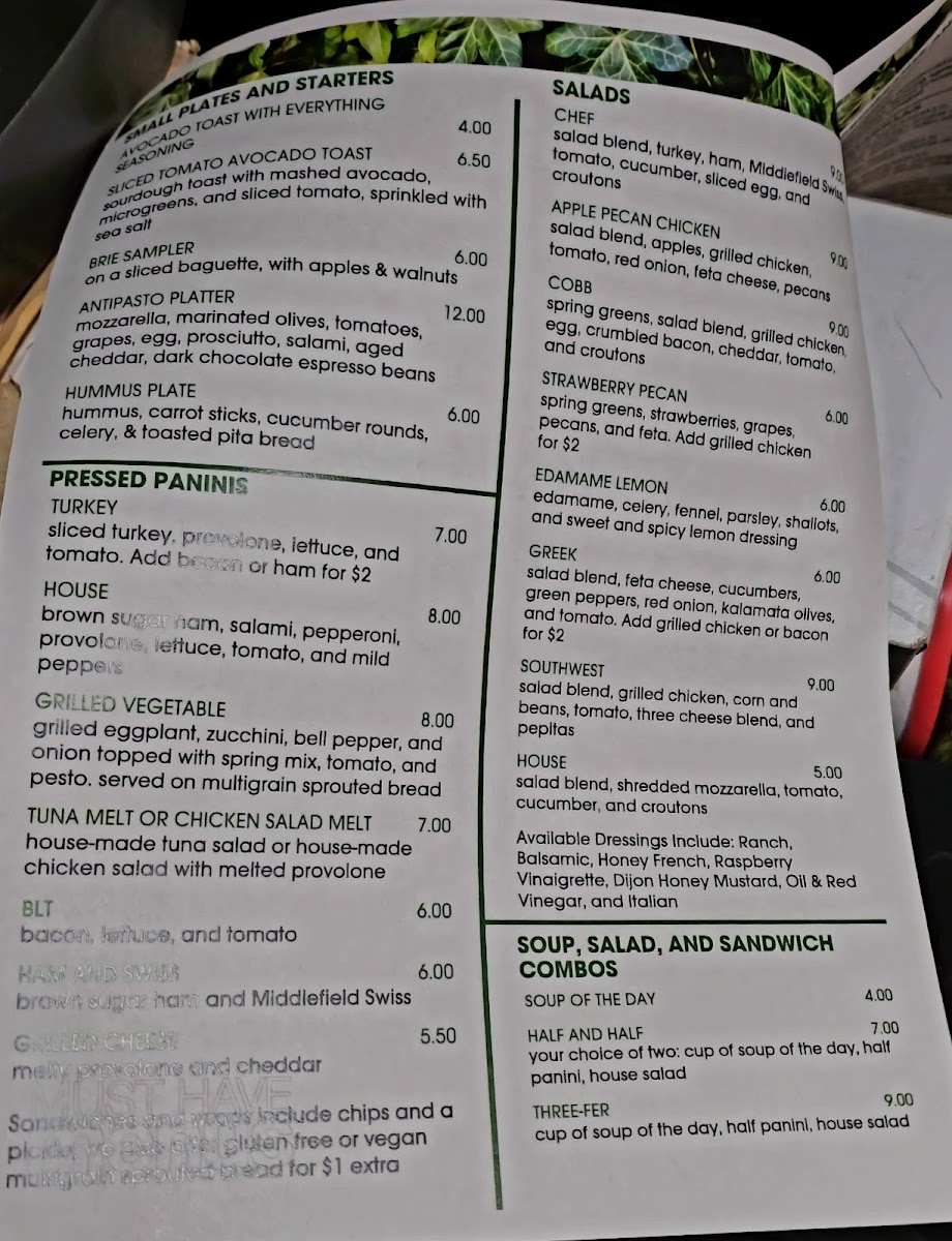 Miller Cafe Menu